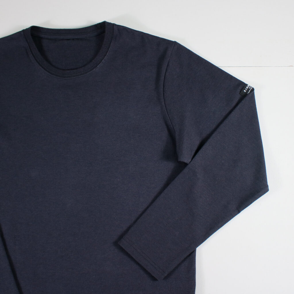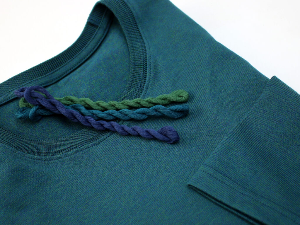 実は撚り杢ネイビーは半袖にも付けていた色で、半袖の撚り杢カラーでは1番人気だったので今回は迷わず採用しました。