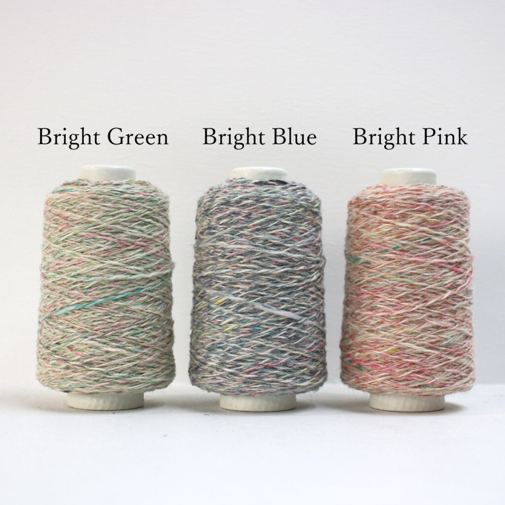 同じようにブルーとグリーンにもそれぞれシルバー+ゴールド+ブルー、シルバー+ゴールド+グリーンの組み合わせでラメを撚っています。