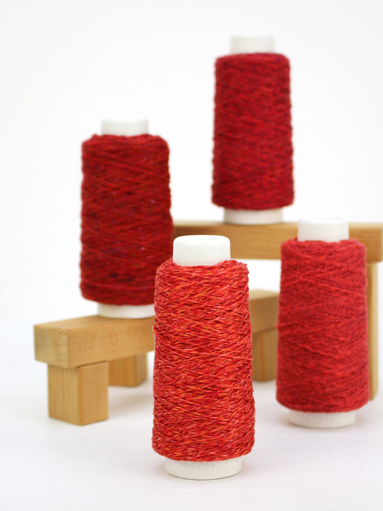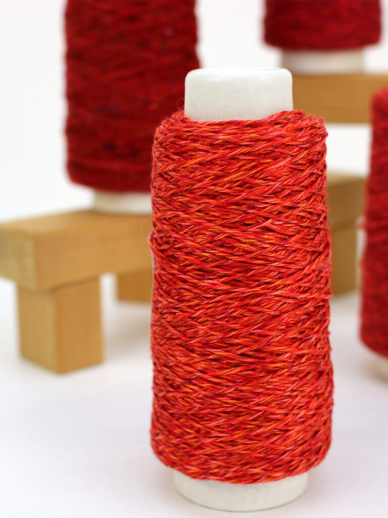 オレンジも混ざって綺麗な発色のリネン糸「花水木」