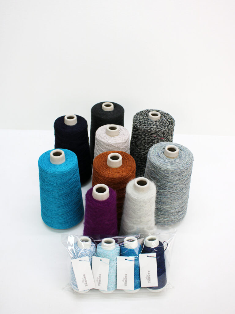 ウールやリネン、コットンなどの残り糸をそれぞれ300g巻きで7本、ウールアルパカナイロンのタムヤーンを100g巻きで2本、季節の4本セットが1つの合計13本セットで価格は税込¥11,000になっています。